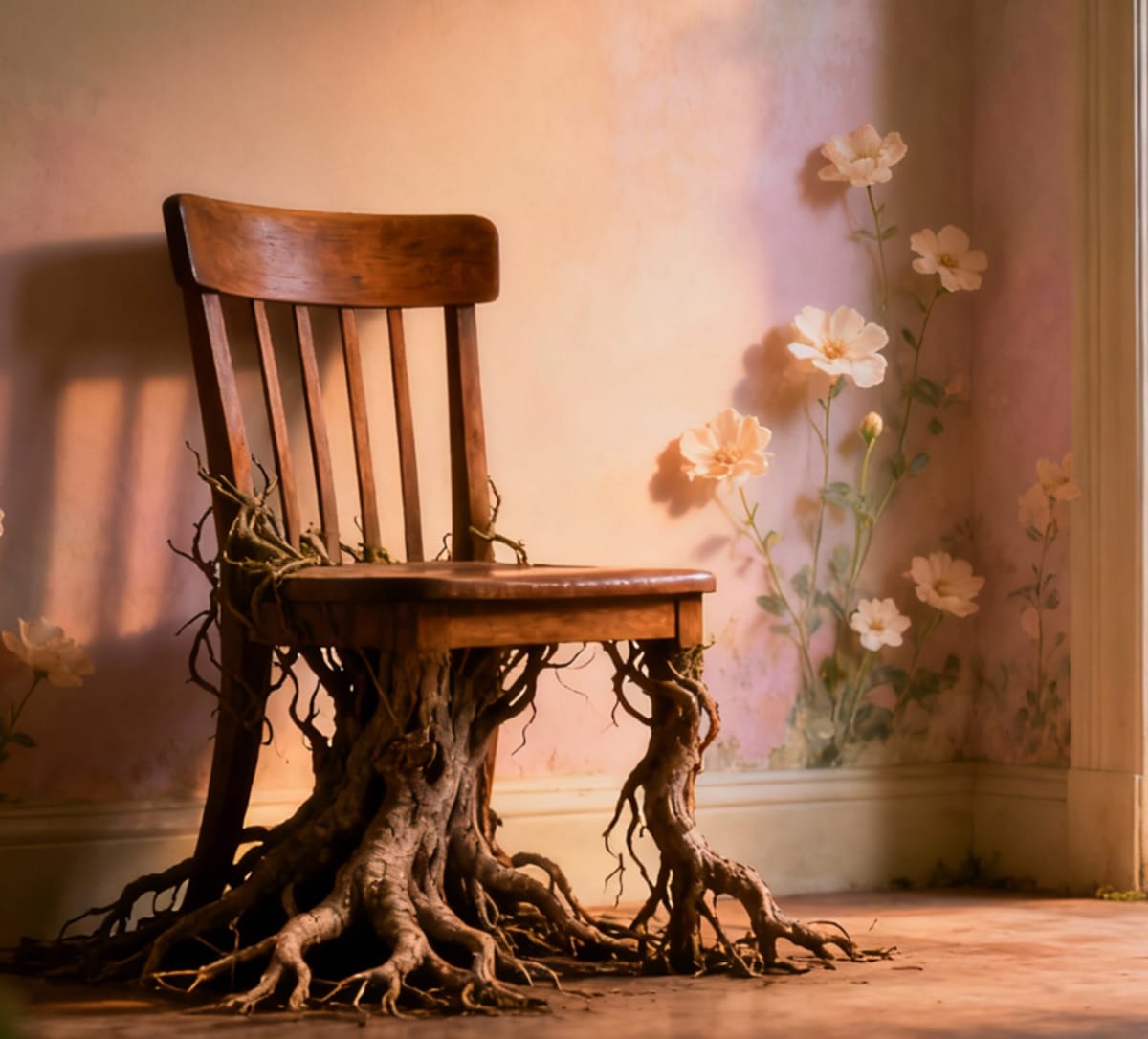 Now the chair had grown into roots. The light hummed like cicadas in late summer. The walls folded inward, soft and perfumed, encasing her in warmth and humming darkness. She lay still, heart slowing to match the rhythm around her.